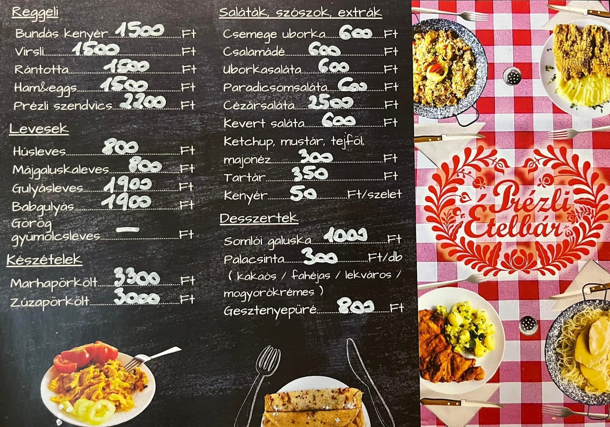 “A Prézli Étteremben a hagyományos magyar konyha kerül a középpontba. Minden nap friss, házias napi menüvel várjuk vendégeinket! A menü mellett klasszikus magyaros fogások is megtalálhatók étlapunkon, így mindenki megtalálja a kedvencét.